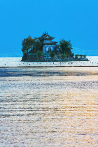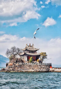 Morning: Enjoy the beauty of Erhai Lake. Visit Ideal State (Shengtu); a photogenic resort complex with Mediterranean-style architecture offering fantastic lake views. See the tiny Xiao Puto (Little Putuo) island and its temple, and stroll through the lakeside Shuanglang Ancient Town.